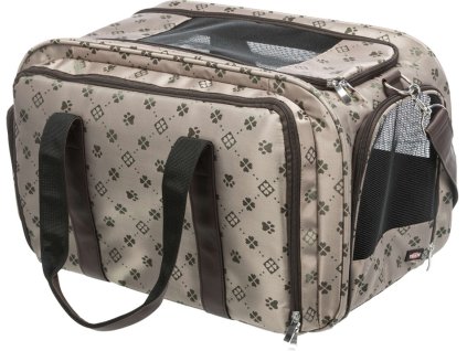 Taška přes rameno pro malá plemena s praktickou síťovou kapsou. Plně nastavitelný polstrovaný ramenní popruh, integrované krátké vodítko zabraňuje zvířeti vyskočit ven