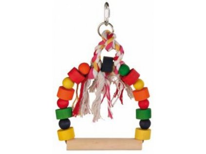 Pestrá bavlněná houpačka do klece. Velmi flexibilní, lze připevnit v jakékoli poloze. Přírodní materiál - bavlna
