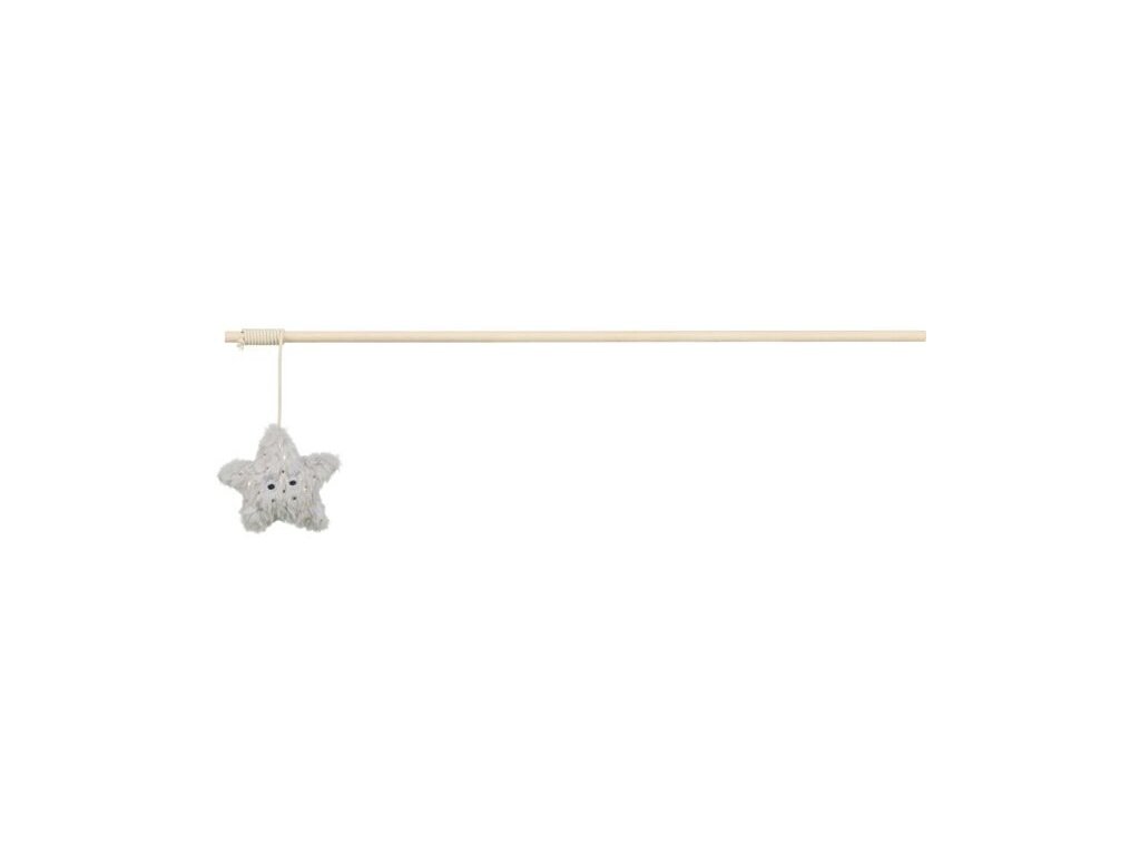 Vánoční hrací prut s hvězdičkou a catnipem, 48 cm, plyš/dřevo, šedá