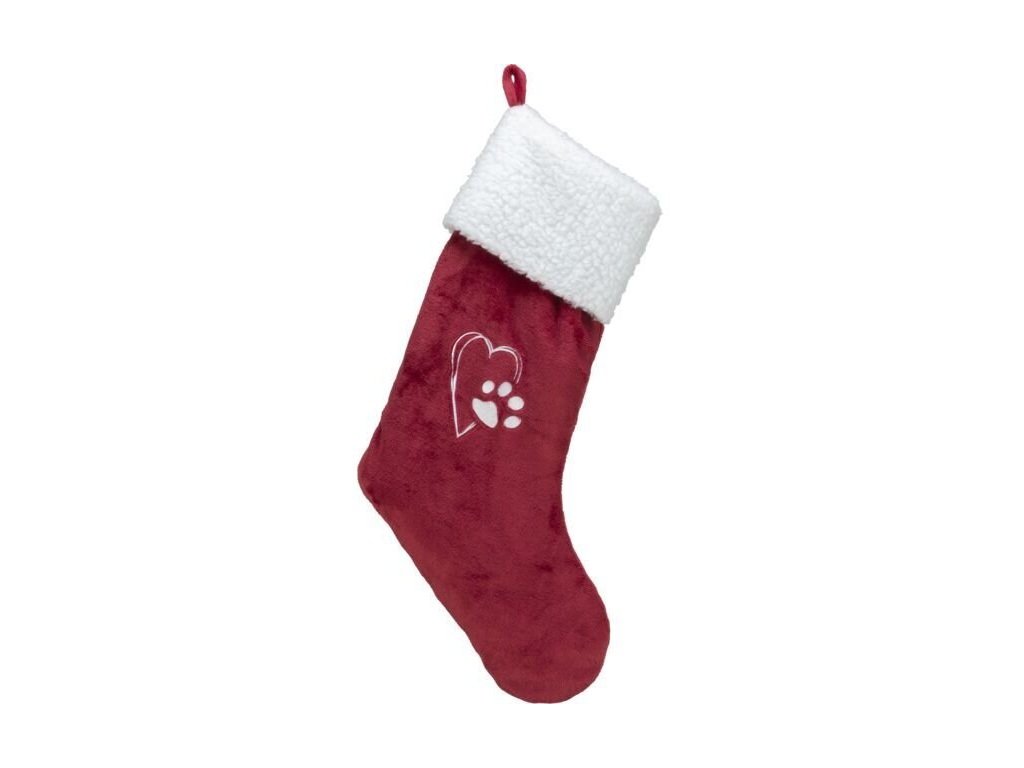 Vánoční ponožka, 47 cm, plyš, červená/bílá