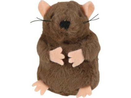 Plyšová myška ve vánoční designu pro kočky se zvukovým čipem, díky kterému zní jako reálná myš. Čip se aktivuje pohybem hračky