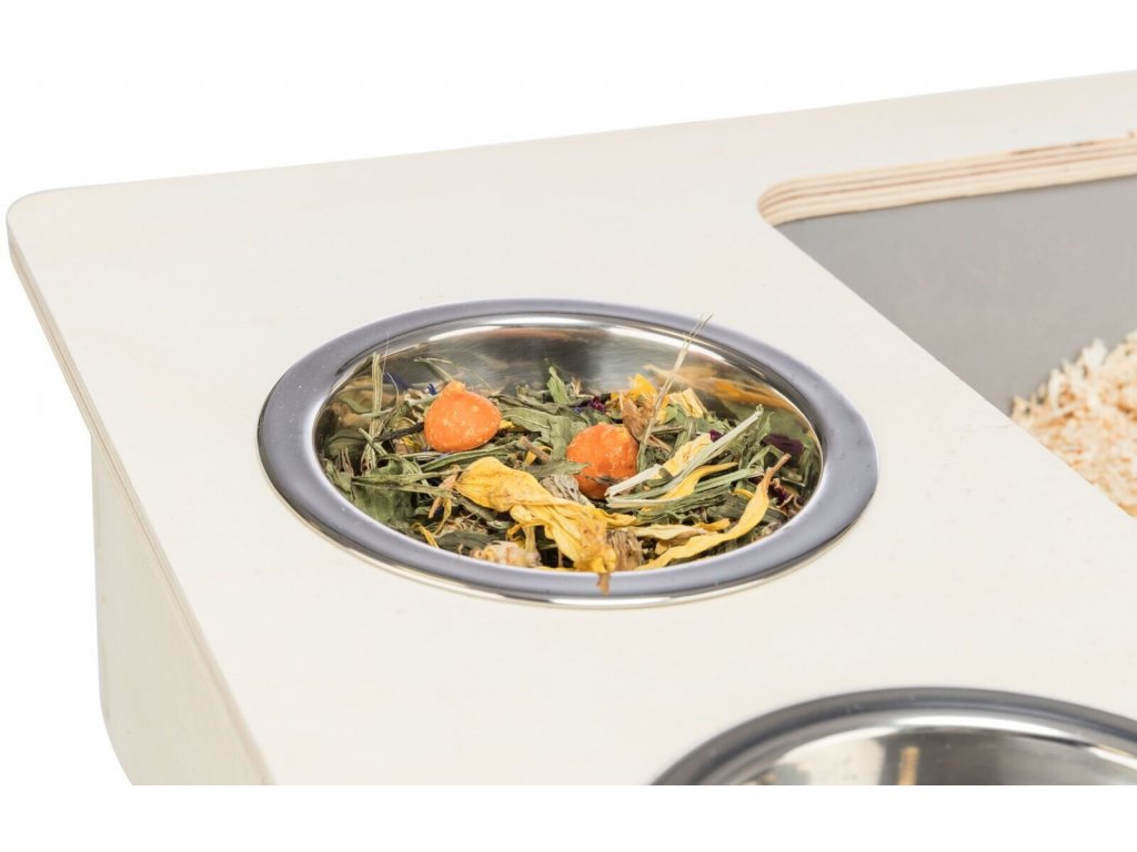Krmná stanice - bar + misky, jesličky - 70 x 41 x 47 cm, dřevo/nerez/plast