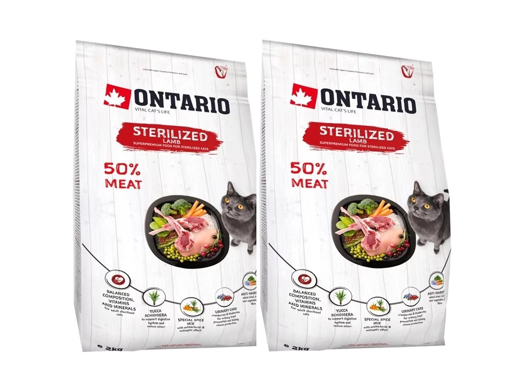 ONTARIO Cat Sterilised Lamb 4kg + dárek Hovězí masová kapsička 100g ZDARMA