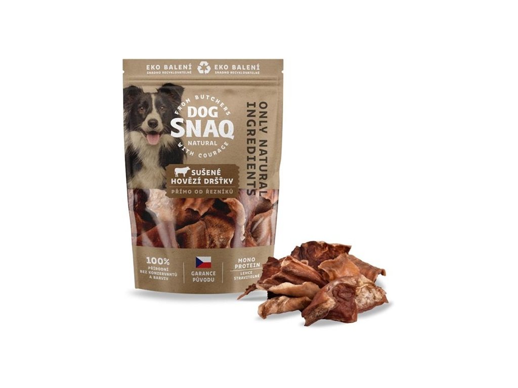Kvalitní sušené doplňkové krmivo pro všechna plemena psů s normální aktivitou. Jde o 100 % přírodní produkt bez přidaných konzervantů, barviv a cukrů. Žvýkání hovězích drštěk posiluje žvýkací svaly psa, čistí zubní plak, masíruje dásně a působí preventivně proti vzniku zubního kamene, vyrovnává hladinu žaludečních šťáv a podporuje peristaltiku střev. Pamlsky jsou bohatým zdroj lehce stravitelných bílkovin a obsahují vyšší množství kolagenu, který prospívá zdraví kloubního aparátu.