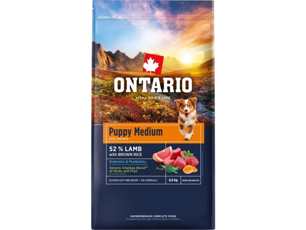 Ontario Puppy Medium Lamb & Brown Rice 6,5kg