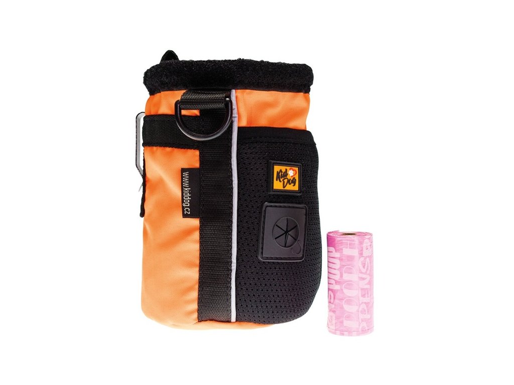 Špičkový outdoorový produkt v moderním designu do jakéhokoliv počasí. Pamlskovník je určený pro výcvik a odměňování Vašeho parťáka. Pamlsky jsou uložené uvnitř velkého prostoru s možností jednoduchého a rychlého vyjmutí. Můžete ho využít při cvičení poslušnosti, výchově nebo agility tréninku. Na procházkách v přírodě využijete jeho praktičnost, díky boční síťované kapse, která má oddělenou vnitřní kapsičku s integrovaným dávkovačem sáčků na exkrementy. Jedna role s 20 sáčky je součástí balení. Pamlskovník je vyrobený z odolného, nepromokavého, omyvatelného a nepromastitelného outdoorového materiálu. Na zadní části pamlskovníku je kovový klip ve tvaru poutka pro upevnění k opasku u kalhot. Na boční straně je umístěná karabina pro připnutí klíčů, píšťalky nebo klikru. Reflexní bezpečnostní pásky vám zajistí lepší viditelnost za šera. Praktický je odnímatelný nastavitelný popruh, který v maximální délce měří 125 cm a můžete jej použít k nošení pamlskovníku přes rameno, kolem pasu anebo v krajním případě popruh poslouží jako vodítko. Vyšité logo KIDDOG dodává pamlskovníku atraktivní design.