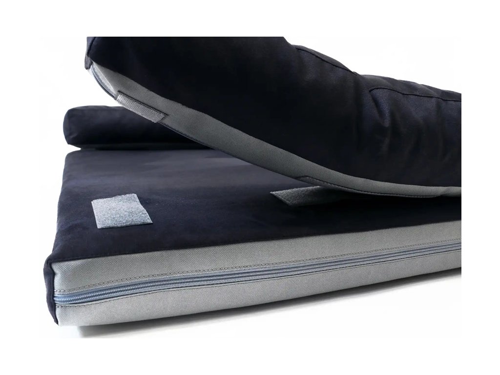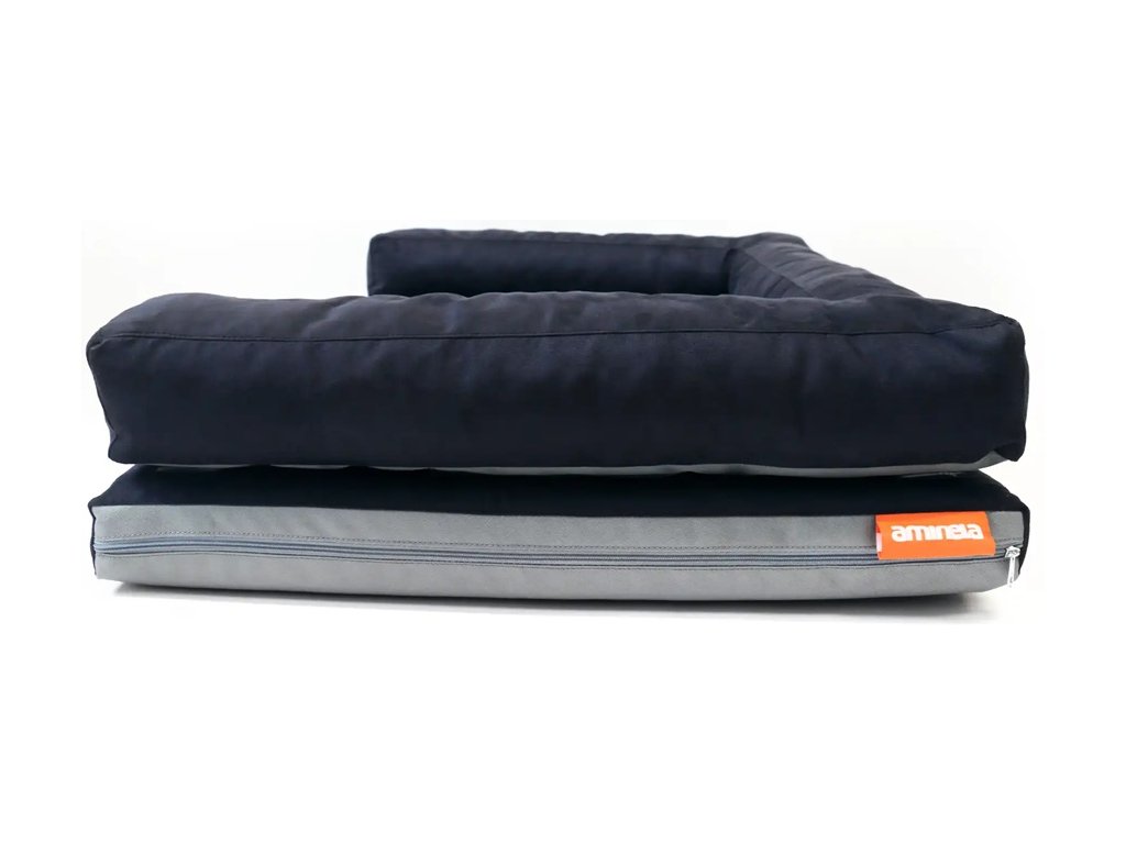 Matrace Aminela se skládá z dvou odolných materiálů, z voděnepropustného materiálu a měkkého, hebkého, avšak pevného a voděodpudivého materiálu, který nešustí a pro psa je velmi pohodlný. Ze stejně hebkého a pohodlného materiálu je vyroben okraj, který se na matraci přichytí pomocí suchých zipů. Kdykoliv se dá okraj odlepit a zase nalepit.