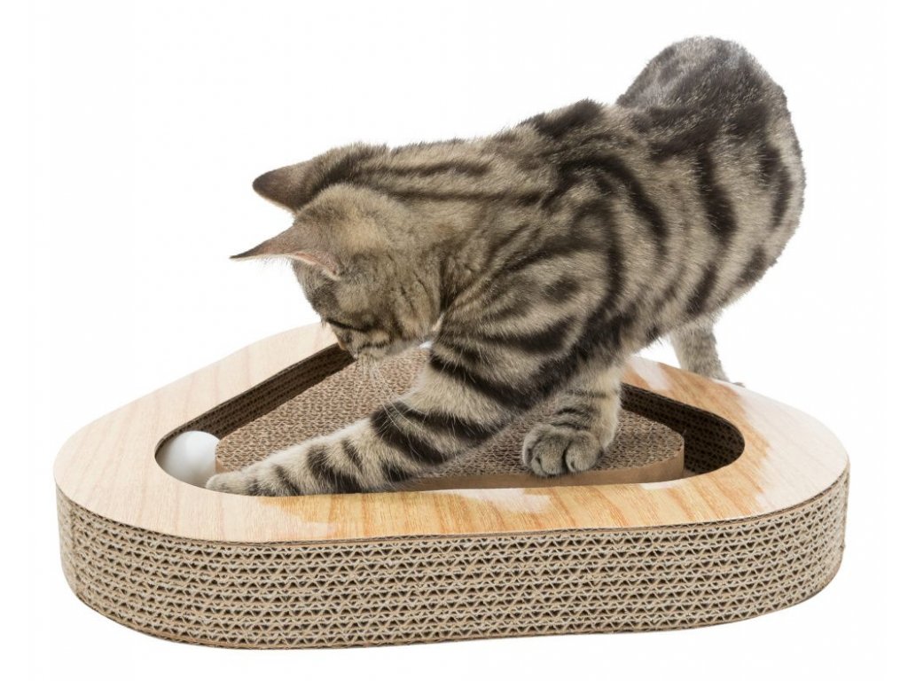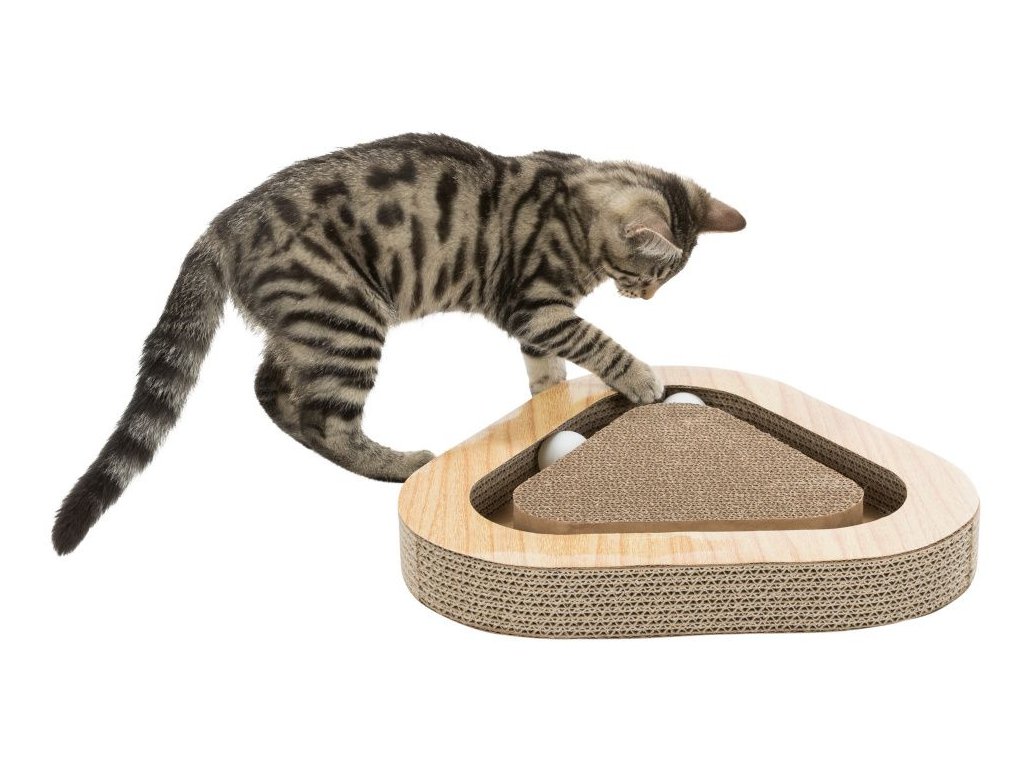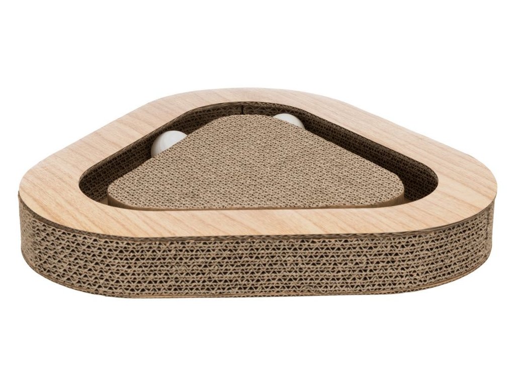 Škrabací karton triangl, s míčky a catnipem, 36 x 5 x 36/36 cm