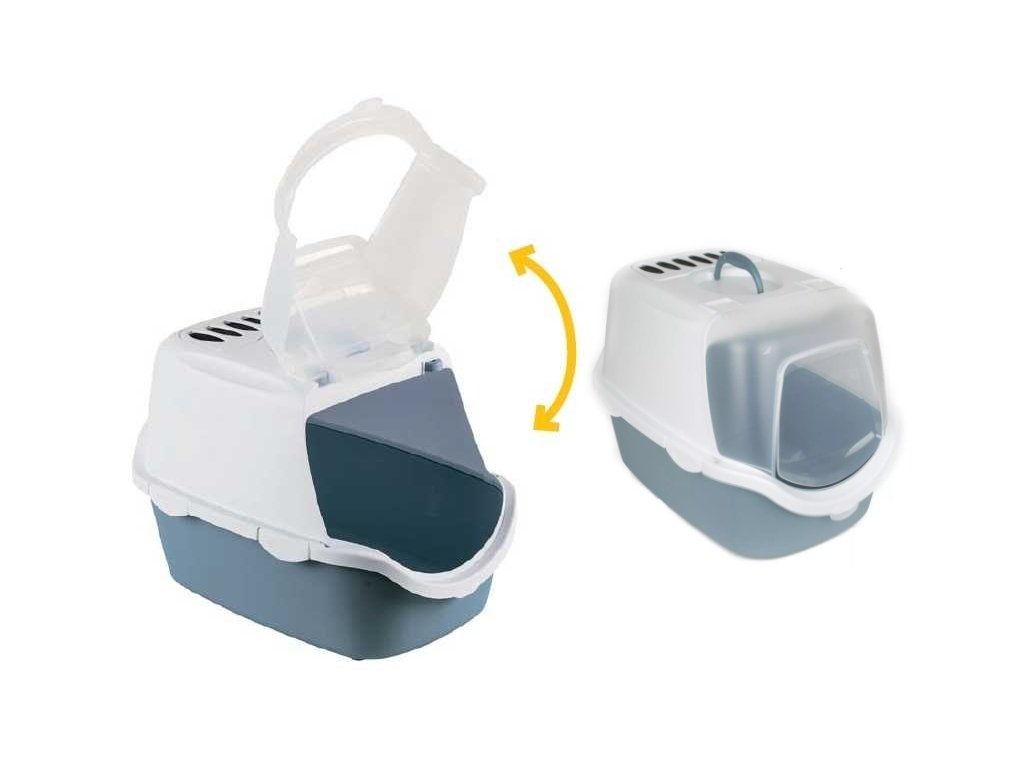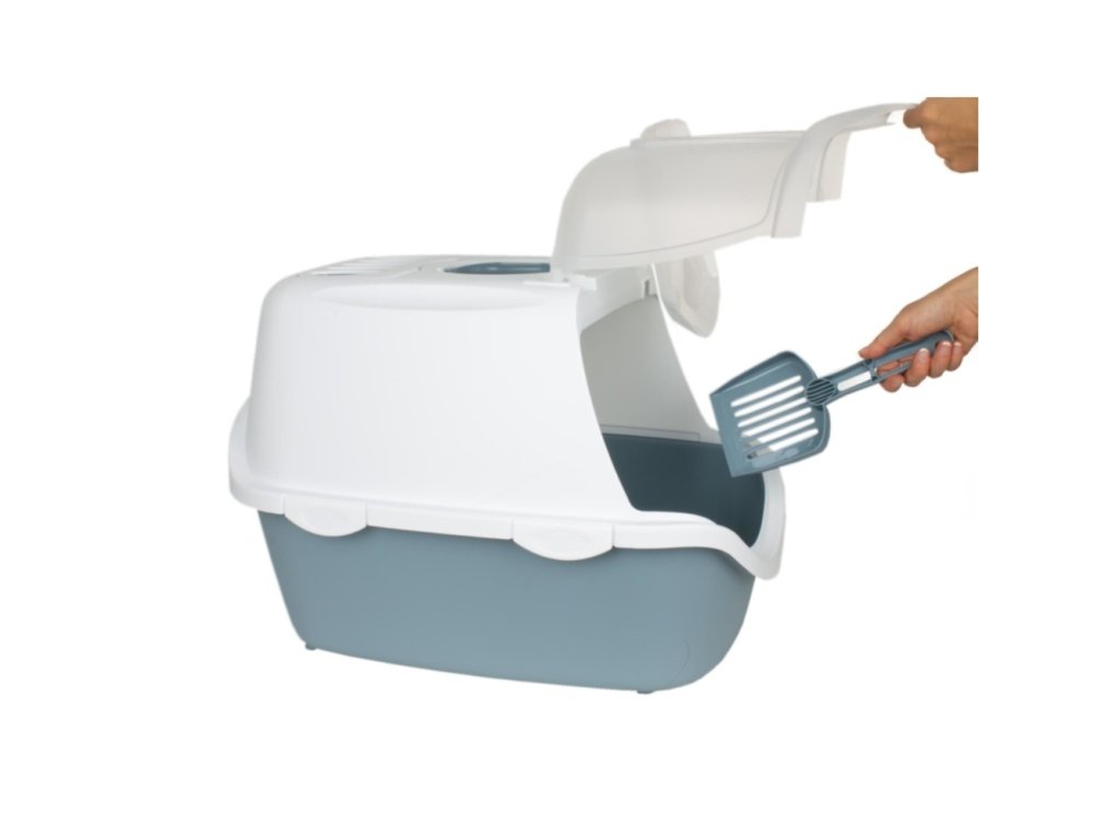 Uzavřené WC CATHY Easy clean pro kočky - s dvířky, lopatkou a filtrem - modrošedé